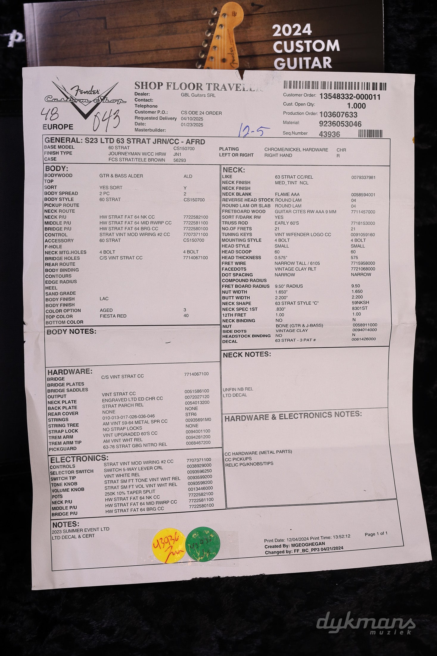 Fender Custom Shop Limited Edition 1963 Stratocaster Journeyman Relic Aged Fiesta Red