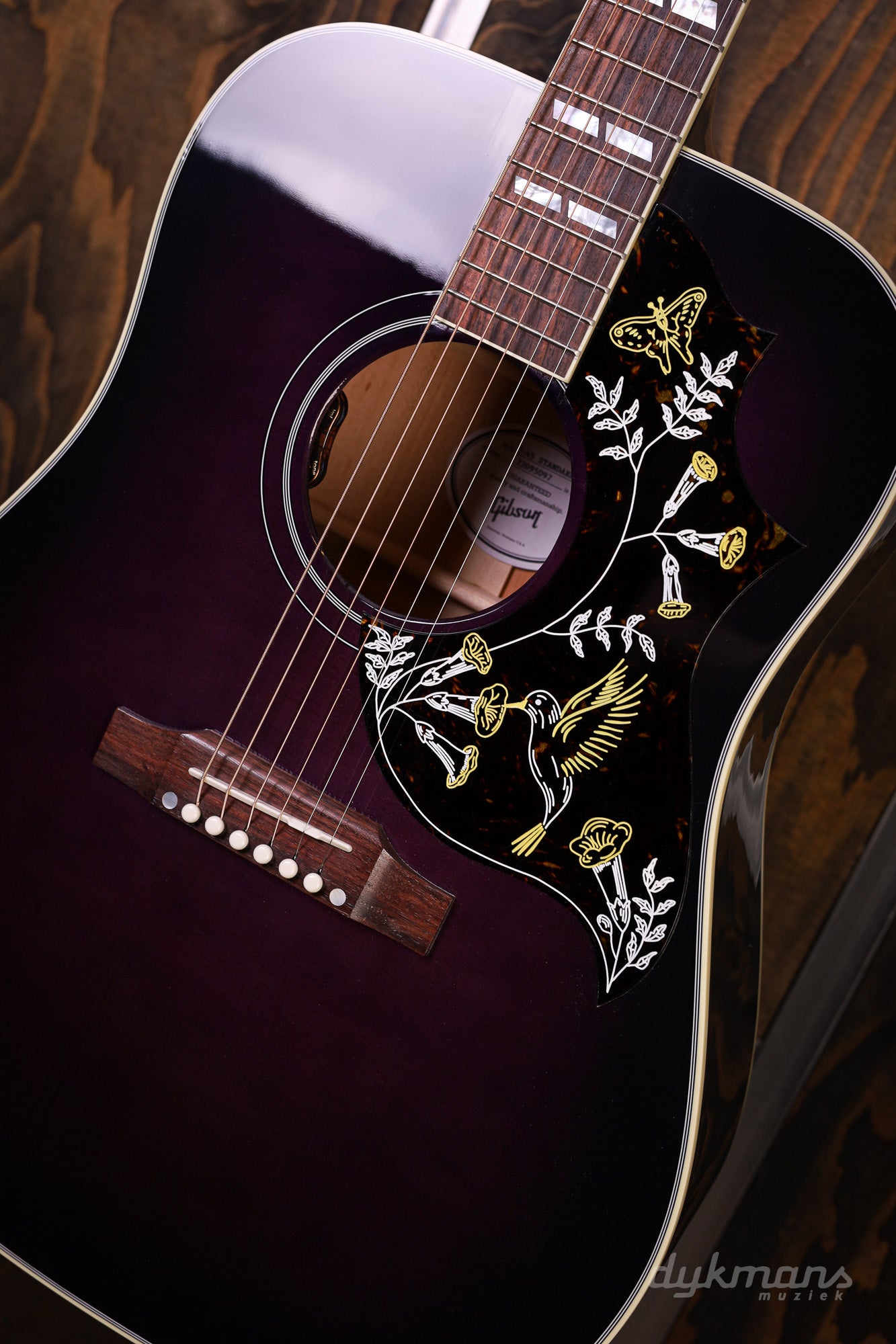 The Gibson Hummingbird has been a true stage performer and studio favorite since the '60s. But what truly sets this classic apart is its versatility. Whether you're softly strumming chords in your living room or playing lead for a packed house, the Hummingbird always delivers that warm, rich sound you can rely on. And in this Purple Burst finish, it's not only an ear-catcher, but also a real eye-catcher.