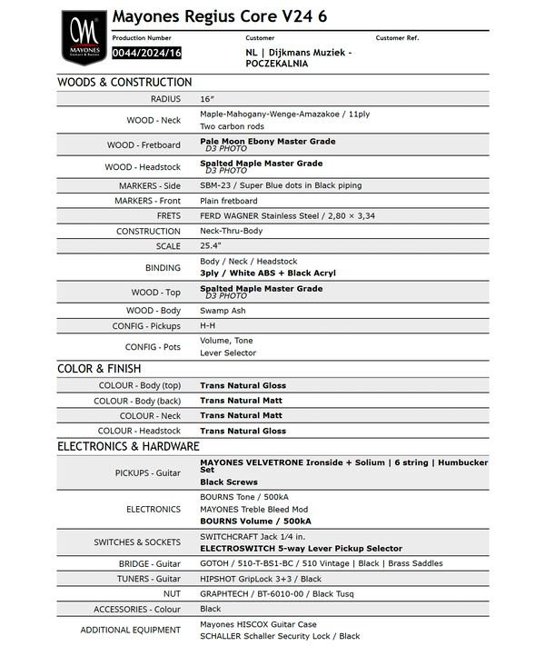 Are you interested in this Mayones? You can Pre-Order it now. The expected delivery time is 2025. Do you have any questions? Please feel free to contact us via info@dijkmansmuziek.nl.