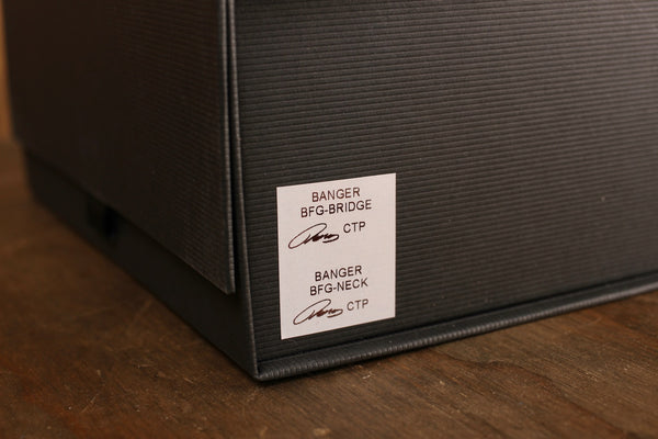 After years of searching for the perfect humbucker, Thomas of Cream T Pickups and ZZ Top guitarist Billy F Gibbons finally came up with the answer: the BFG Bangers! If you're looking for a pickup that's been engineered to perfection and endorsed by one of the world's top guitarists, this could be the pickup for you. Slightly hotter than the pickups Mr. Gibbons has in his '59 Les Paul Sunburst, the BFG Bangers lend themselves to both vintage oriented players and modern guitarists who want that little bit extra. This time with beautiful Aged Nickel covers.