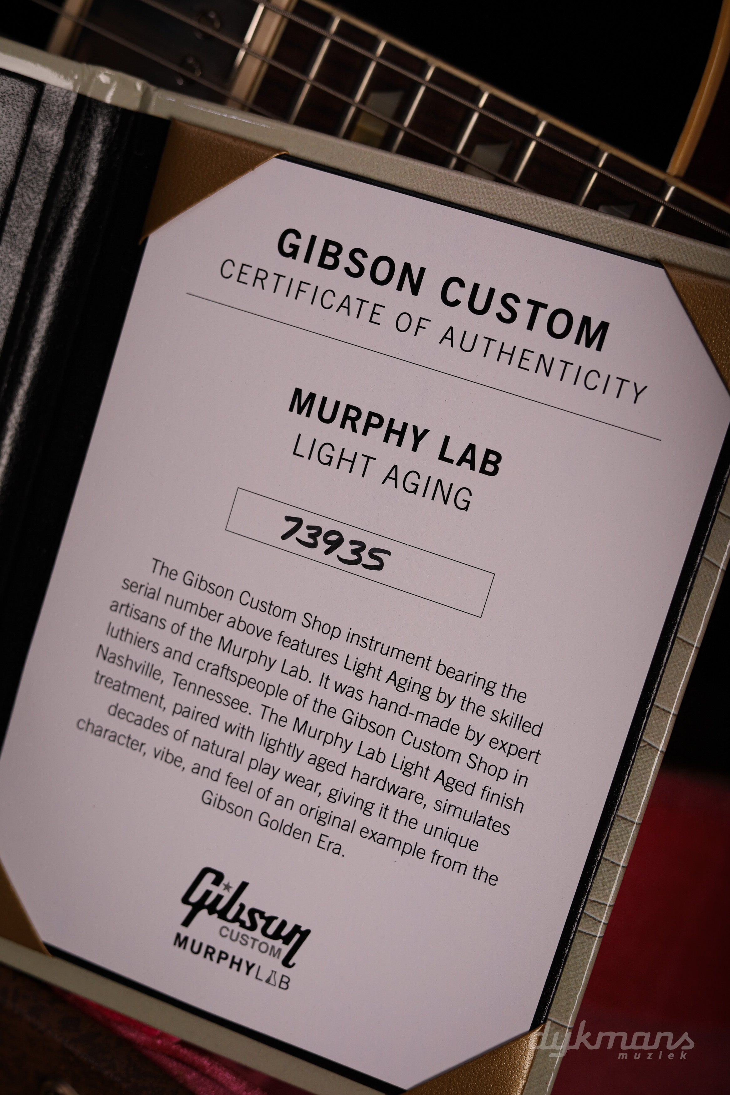 De Murphy Lab Light Aging zorgt voor een subtiel verouderde nitrocellulose lak en licht gepatineerde hardware. Hierdoor voelt de gitaar direct als een goed onderhouden vintage instrument, terwijl hij tegelijkertijd de betrouwbaarheid en bespeelbaarheid van een nieuwe Custom Shop gitaar biedt.