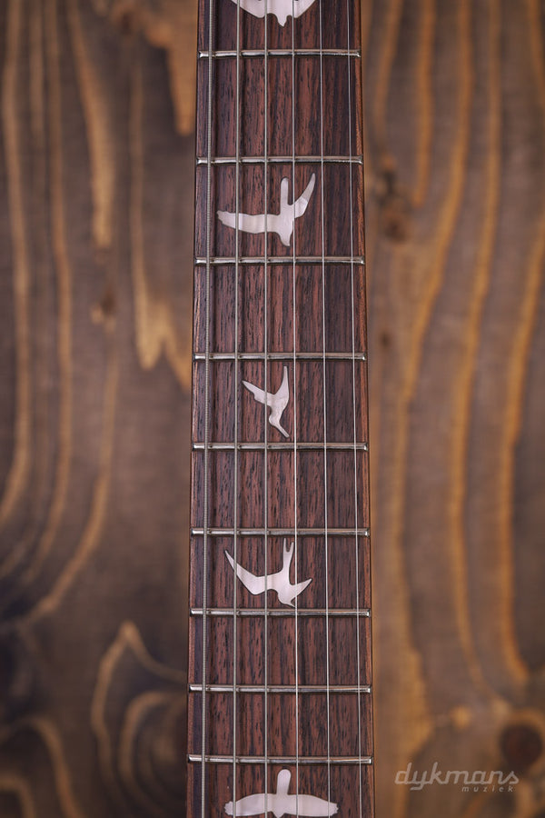 After the huge success of the 35th Anniversary SE Custom 24, Paul Reed Smith has decided to include the Custom 24-08 in the standard SE line-up from 2021 and that is of course great news. Especially when they look as beautiful as this Turquoise version. The 24-08 differs from the standard Custom 24 by the two mini toggle switches that are located between the volume and tone controls. Using these switches you can split both humbuckers separately to a single-coil mode. This gives you a total of 8 unique sound options, and that is not only very convenient: all positions sound exceptionally good. Furthermore, this Custom 24-08 feels familiar with its mahogany body, maple top, rosewood fingerboard, the traditional 25" PRS scale length and of course the bird inlays! Including sturdy PRS SE gig bag.