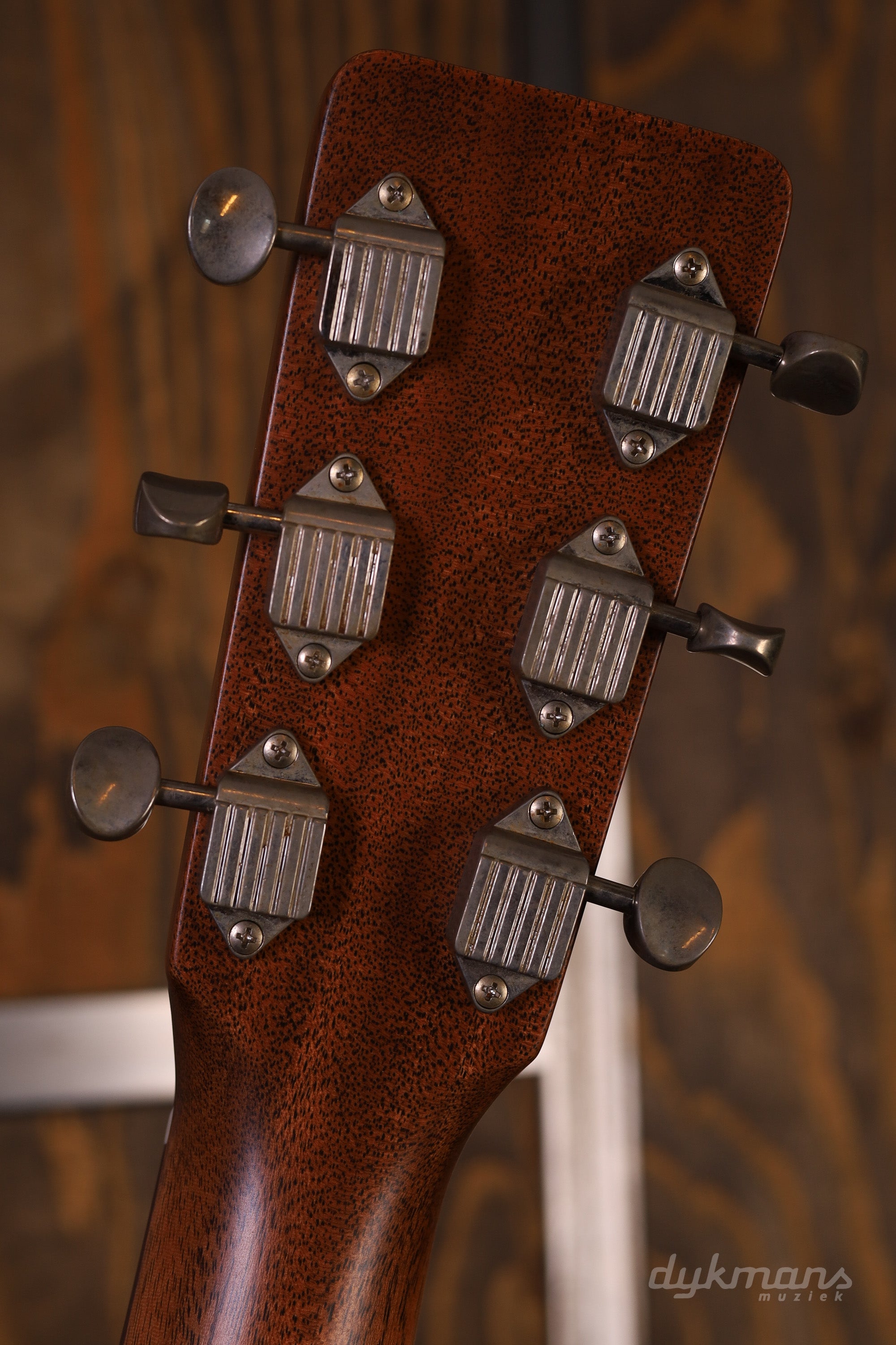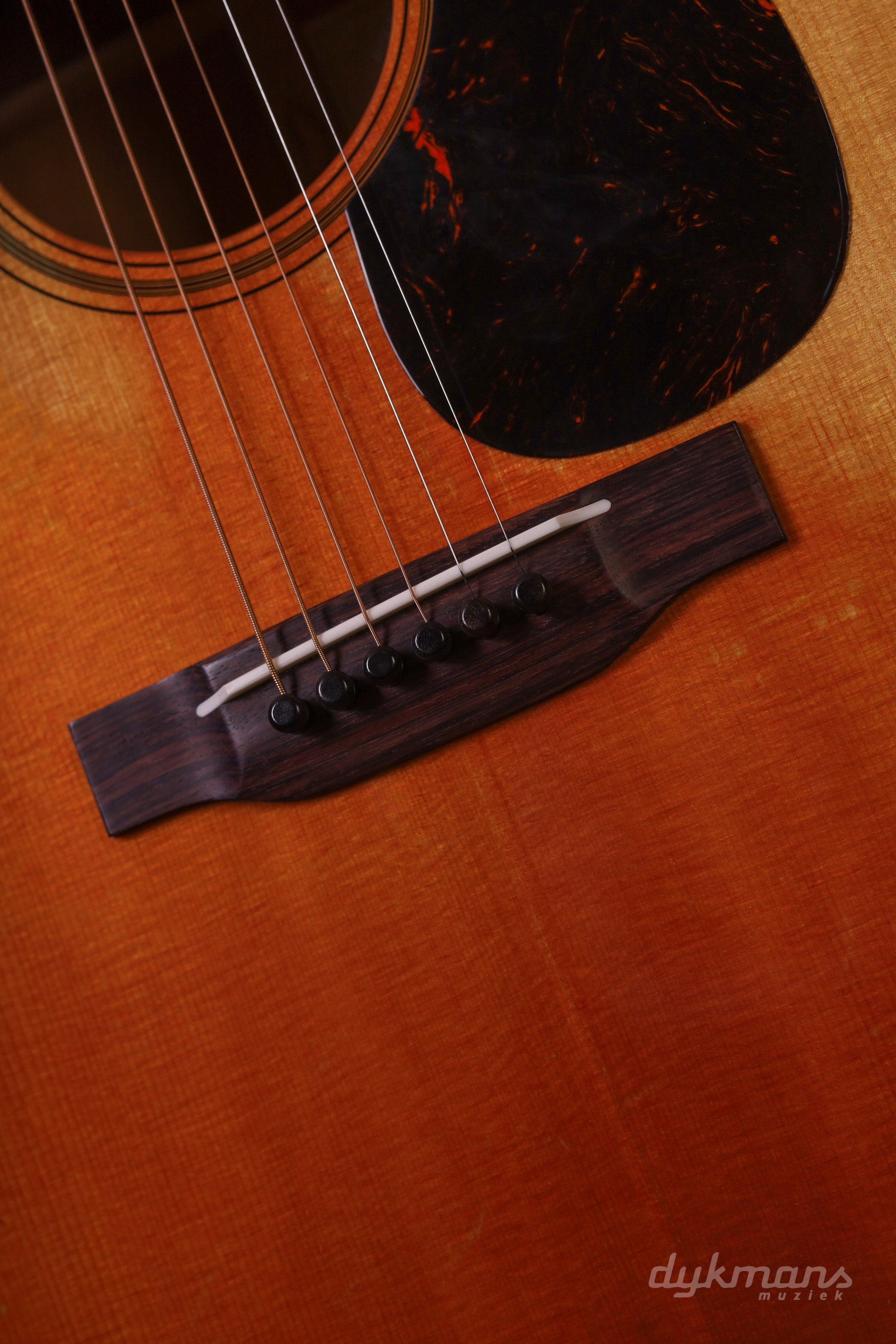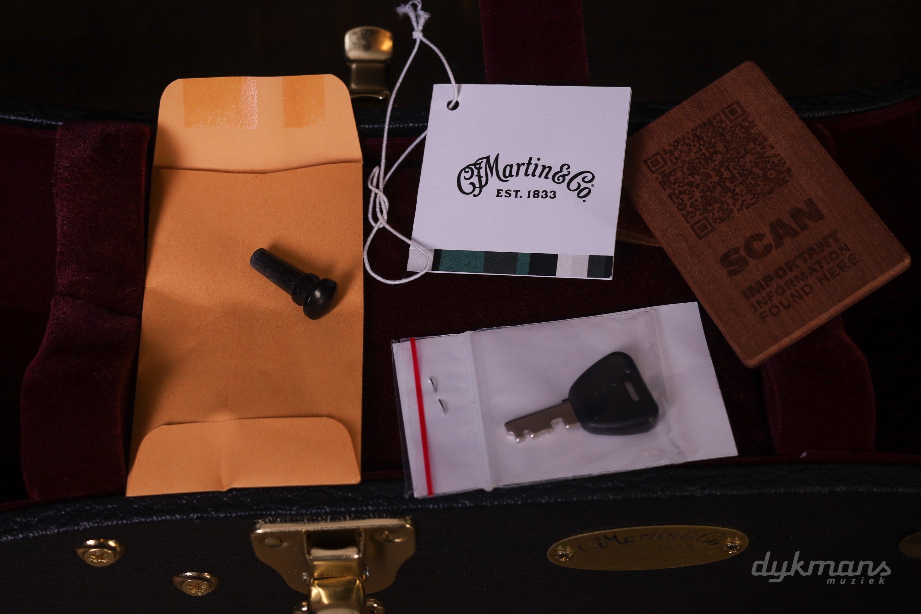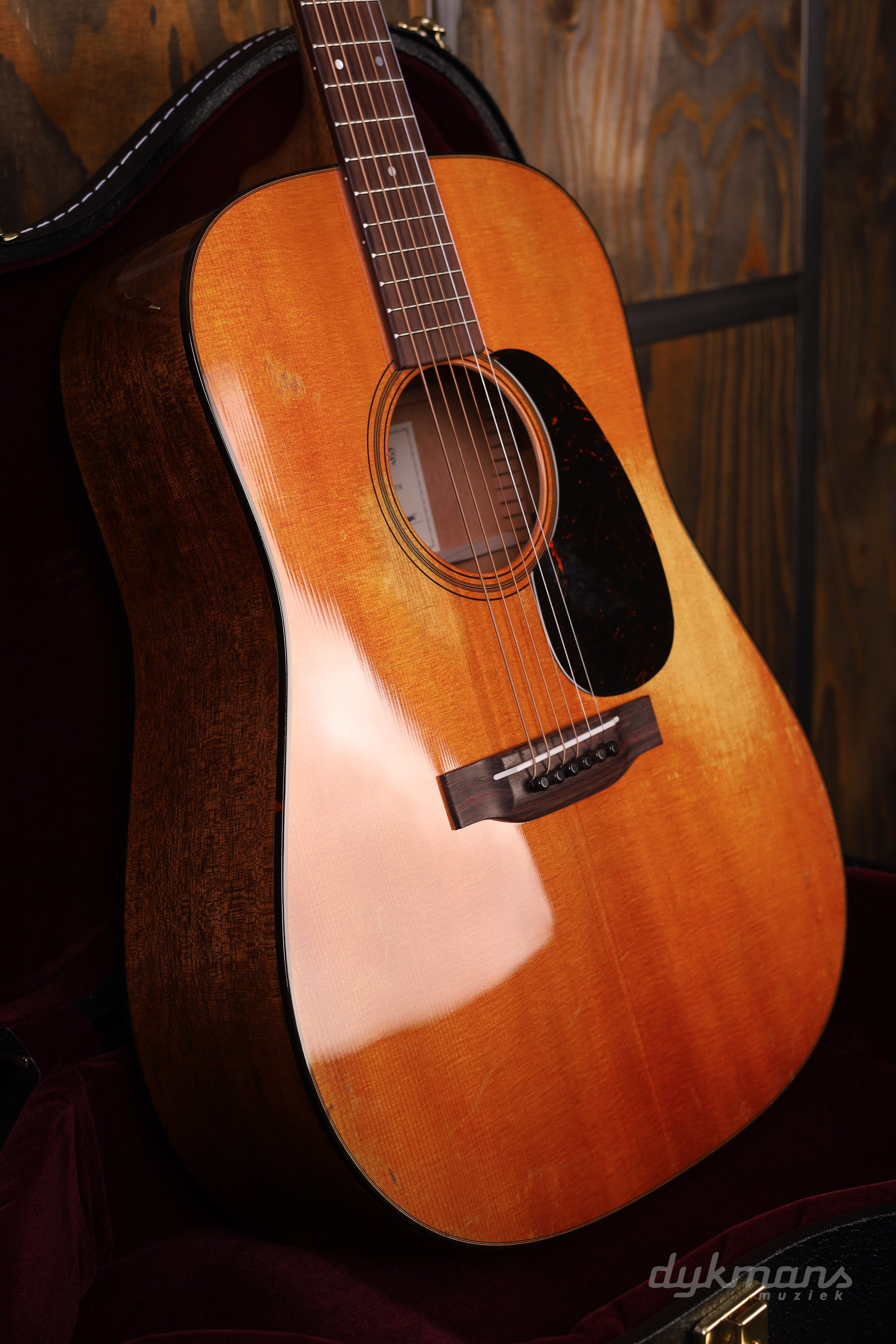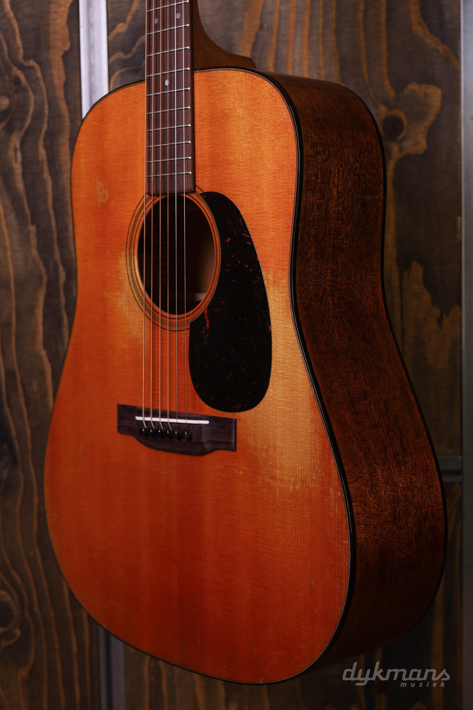 The top is printed to replicate the authentic worn look of the original 1955 model. This contributes to a clear, balanced tone and gives the instrument additional historical significance. Combined with the rear-shifted non-scalloped Sitka spruce X-bracing, the guitar delivers an accurate, focused sound with sparkling highs and a responsive playing experience.
