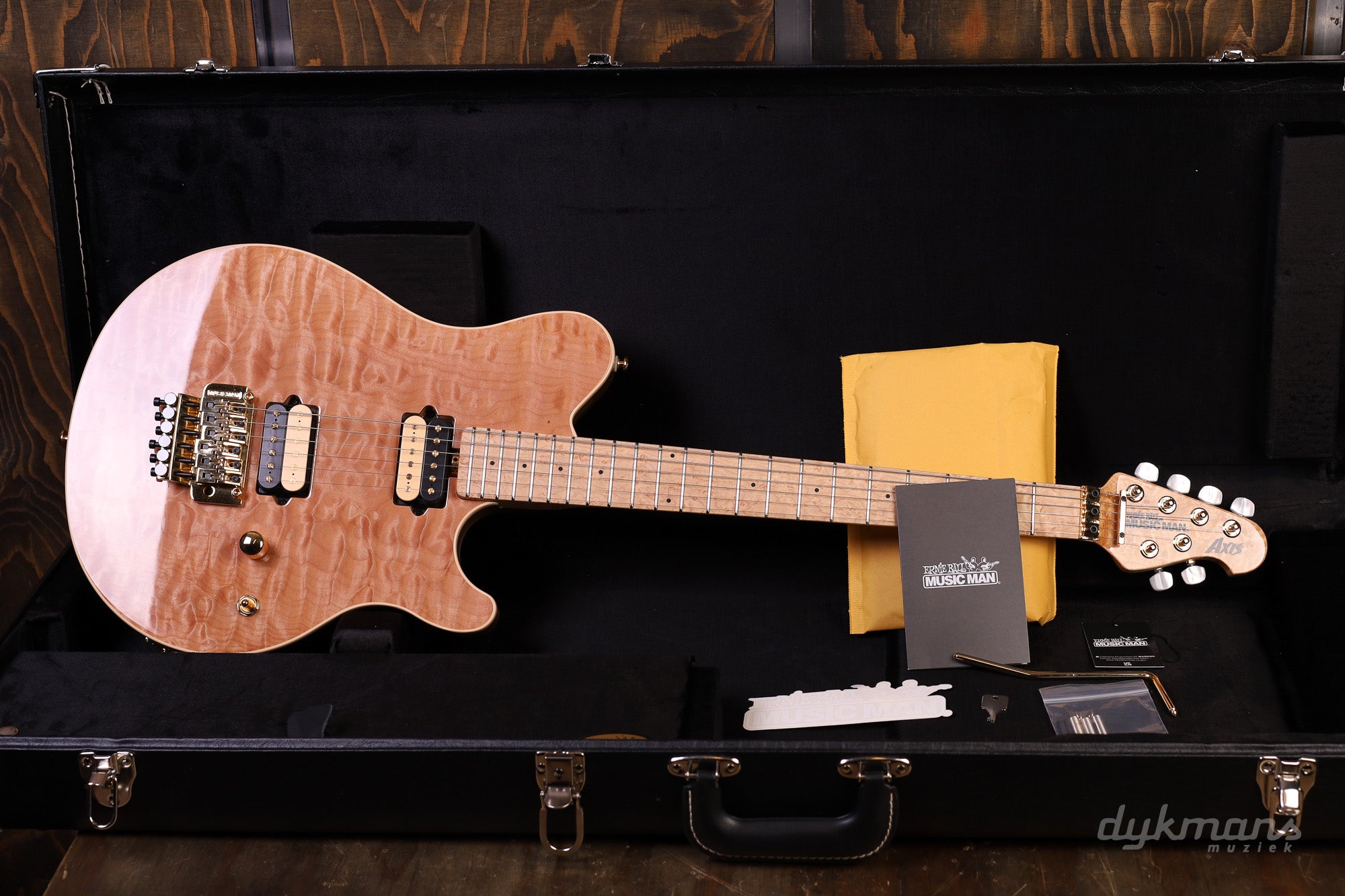 Music Man Axis one piece quilted maple top Natural met gouden achterkant!