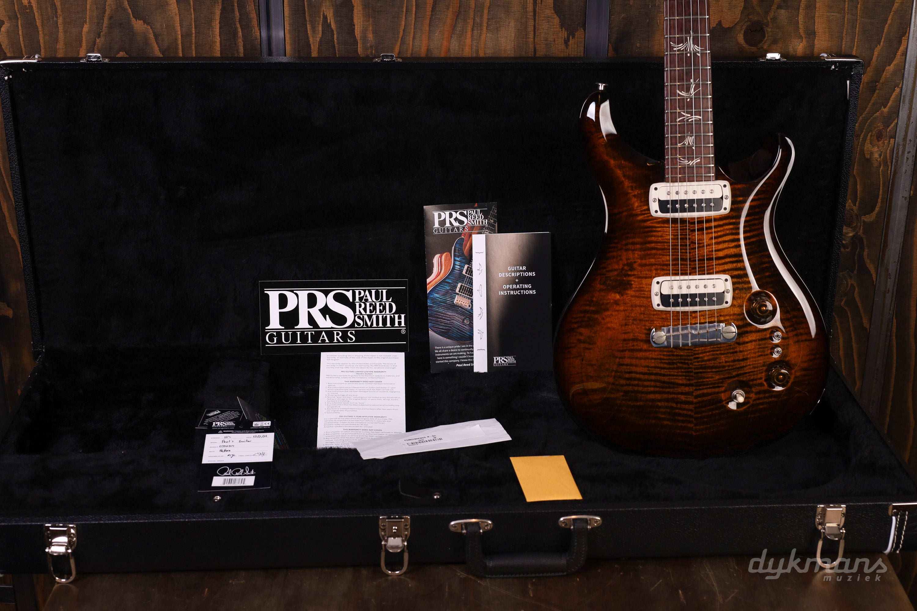 You won't get much closer to the person of Paul Reed Smith! The PRS Paul's Guitar is completely built to Paul's personal preferences, and the Paul's Guitar is packed with all his favorite features. First of all, of course, the classic combination of a mahogany body with a beautiful Carved Figured Maple Top. The guitar that once inspired Paul to start building his own guitars was a Les Paul Junior with a wraparound bridge, so it's no surprise that a PRS Stoptail wraparound bridge was chosen for the Paul's Guitar. This gives the guitar its own tone and feel compared to the other PRS models. In terms of elements, the new TCI pickups have been chosen. These pickups allow you to effortlessly go from a strong, full bridge humbucking sound to a crystal clear and defined neck single coil tone by using the mini toggle switches. And all this without signal, tone or extreme volume loss! The full humbucking sounds sound more like a full P90, and the single coil settings are almost reminiscent of a Fender single coil. Thanks to the TCI tuning you really hear every note on this guitar as it should sound, and it produces an almost acoustic quality. Unique. Also new is the CAB (nitro over cellulose) finish. This ensures that the wood of your PRS can breathe properly, without sacrificing the protective factor of the finish. Includes luxury case.