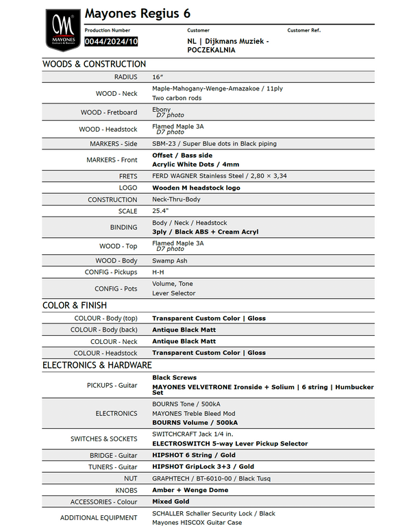 Are you interested in this Mayones? You can Pre-Order it now. The expected delivery time is 2025. Do you have any questions? Please feel free to contact us via info@dijkmansmuziek.nl.