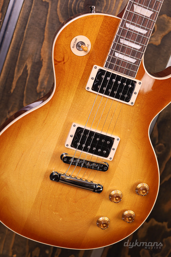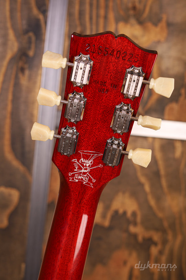 Fans of Guns N' Roses and Velvet Revolver have probably heard the name "Jessica". This is the name of Slash's most used Les Paul for performances. In 1988, Slash received a pair of Les Pauls from Gibson, of which the Jessica eventually became his favorite. This beautiful reissue is a tribute to Jessica and has the same recognizable three-piece plain maple top as the original. The mahogany body, mahogany neck and a pair of Custom Burstbucker Pickups immediately give this Les Paul the characteristic Slash sound. The neck with its 50s profile is a bit thicker than you are used to from Slash-inspired guitars. Just like the original, the Slash Jessica is finished in a nitrocellulose Honey Burst finish. This Gibson comes with a case, Schaller Strap Locks, a set of Slash picks, a USA Leather Strap, a handy multi-tool and an extra truss rod cover.